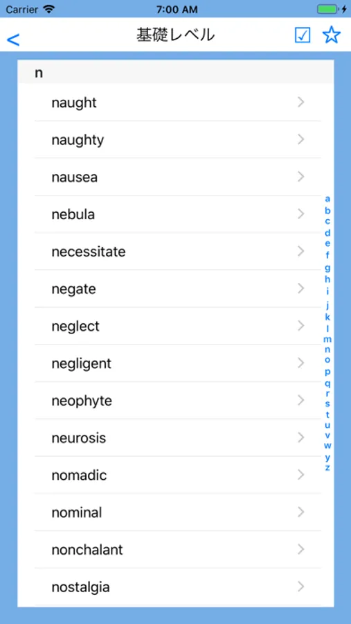 記憶済みの単語にはチェックマークを、重要単語には星マークを追加できます。