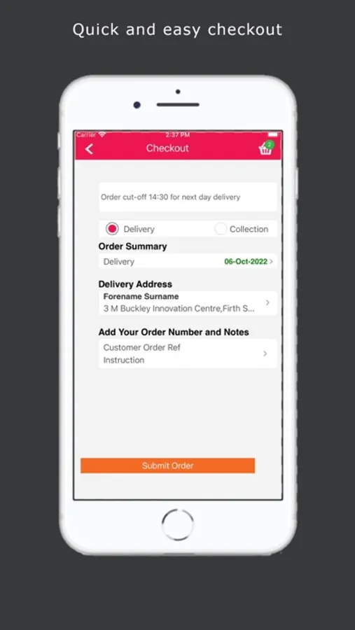 4. Place your order, then click and submit (partial orders can also be saved in the cloud to finish at a later date, on any compatible device)