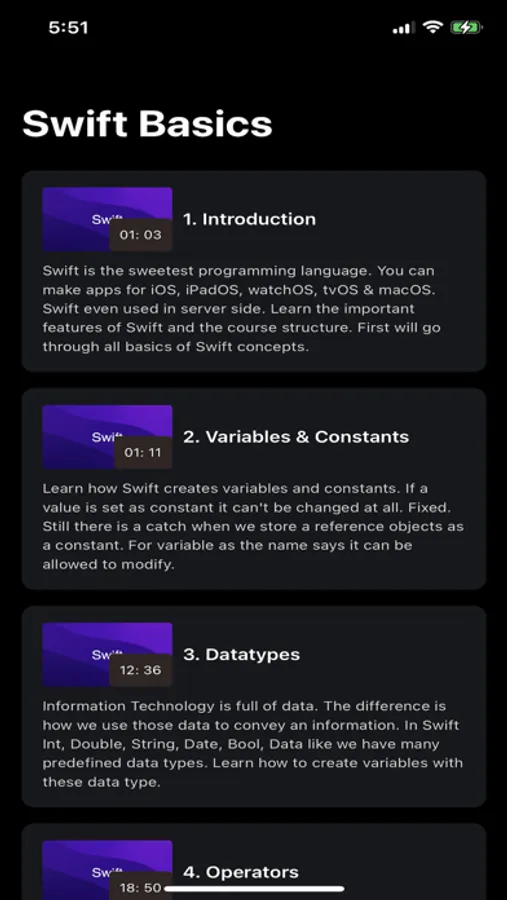 This app contains 50+ video tutorials on Swift, SwiftUI, UIKit and other iOS technology frameworks.