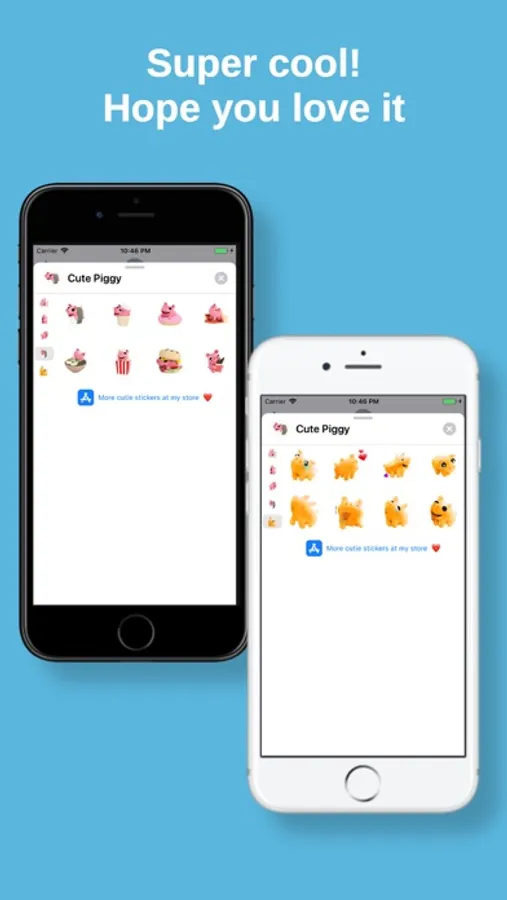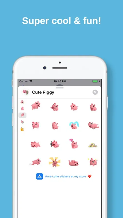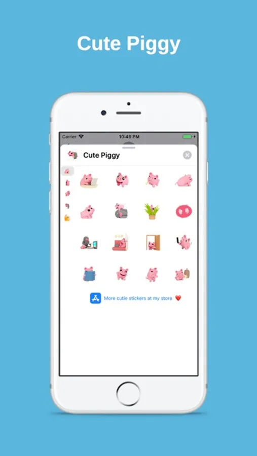 ● Set of 64 high quality animated stickers of cute Cute Piggy!