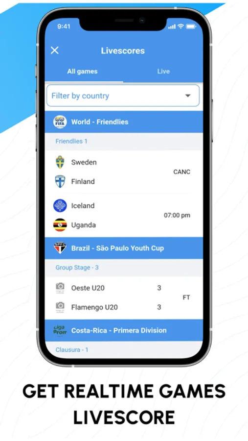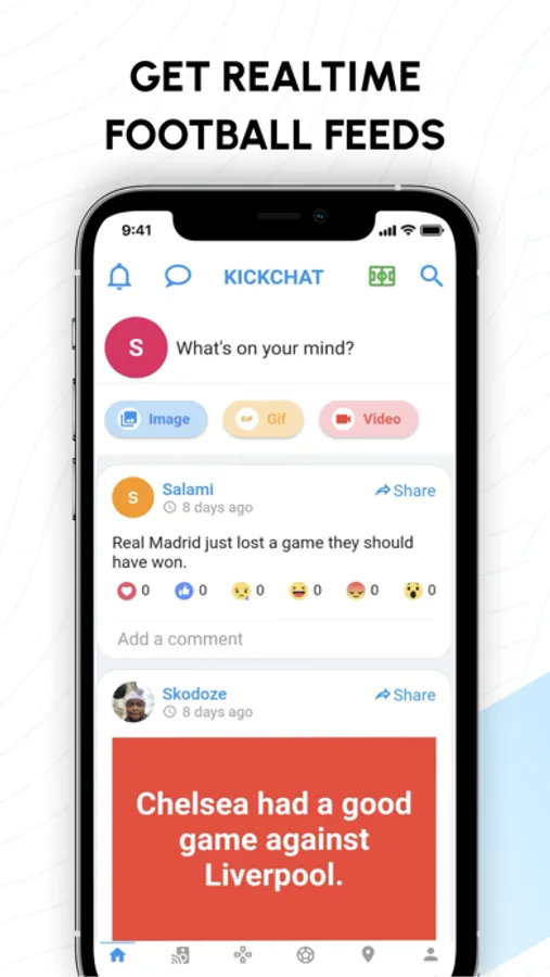 Get realtime posts and feeds from football fans and people you follow. You can add reactions, comments and share posts to other social networks.