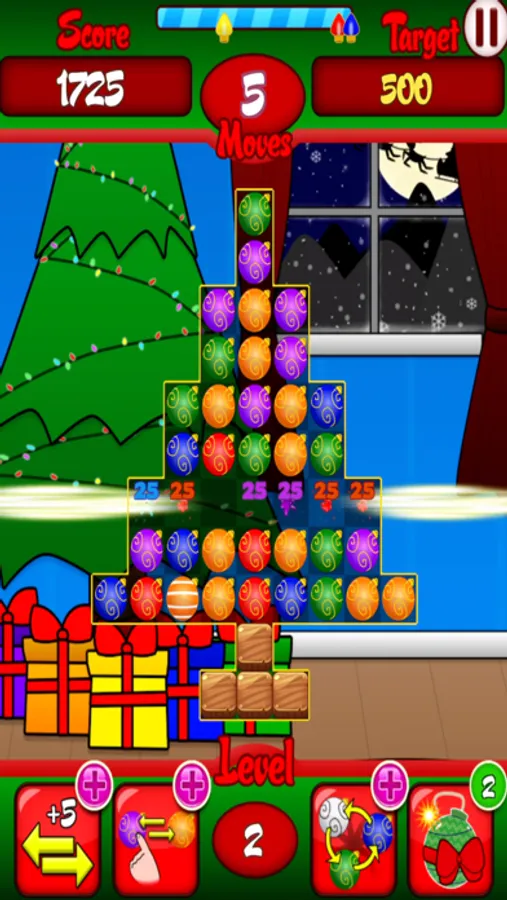 Match 4 or 5 Ornaments to obtain power boost ornaments.