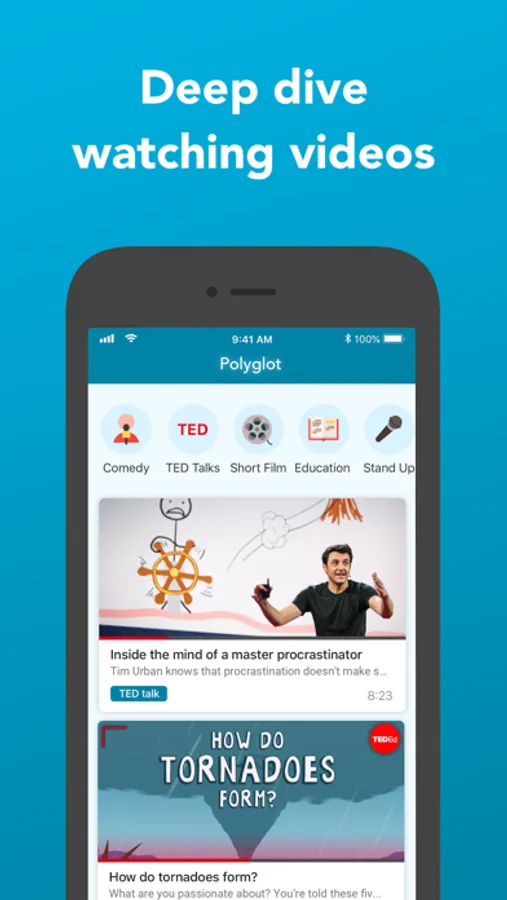 With Polyglot you will immerse yourself in the language and develop your listening and speaking skills.