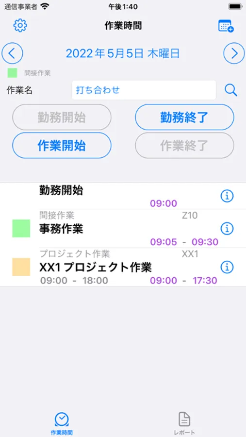 作業名は都度入力となりますが、繰り返し実施する作業は、マスタ登録しておくことができます。