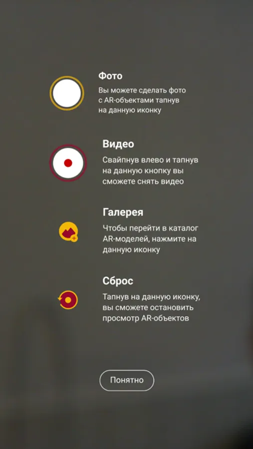 Для создания фото и записи видео с объектами в дополненной реальности, предоставьте разрешения на вашем устройстве.