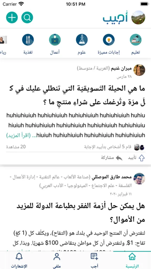 - أجيب هو مجتمع عربي معرفي يجمع ما بين السائل الذي يبحث عن المعلومة والمجيب الذي يمتلكها، يمكّن أجيب مستخدميه من الإجابة على الأسئلة ومشاركة خبراتهم وتجاربهم مع الآخرين، كما ويتيح لهم إمكانية طرح أسئلتهم في مختلف المجالات والتخصصات التي تهمّهم.