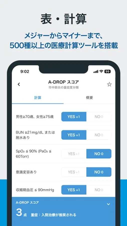 ・表・計算ツール:メジャーからマイナーまで、500種以上の医療計算ツールを搭載