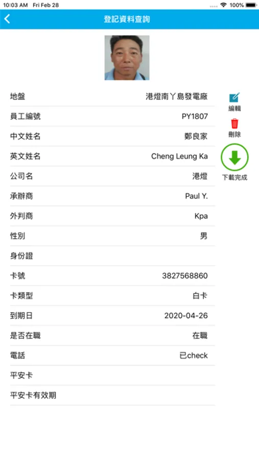 - 拍照登記員工