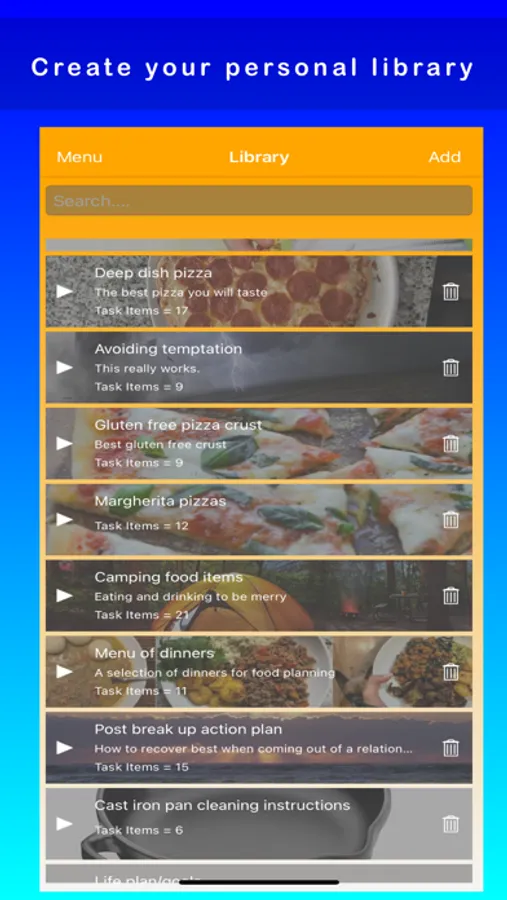 Added some more camping gear? Cool, add it to the Library, from that point on, you are set.