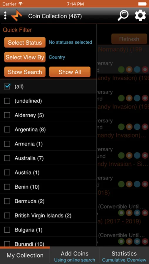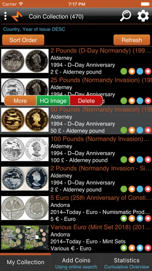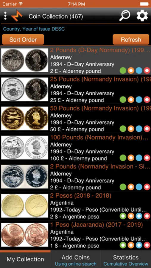 Tag your coins with Have, Wish, Trade and Sell status by simple click on status button or customize your own status list.