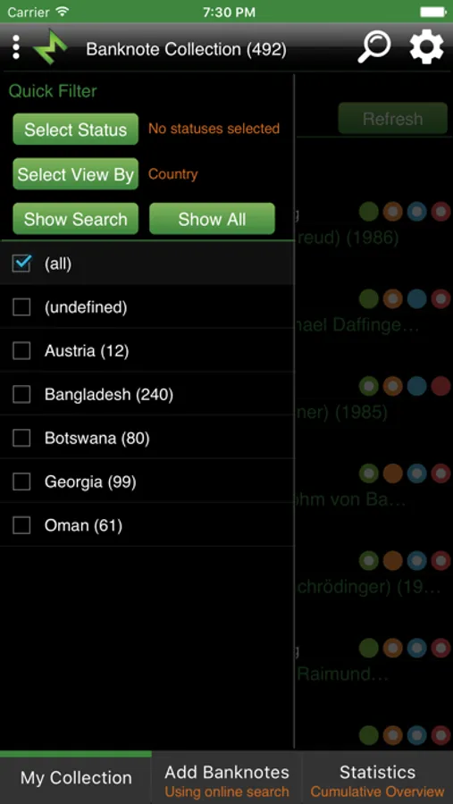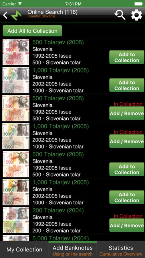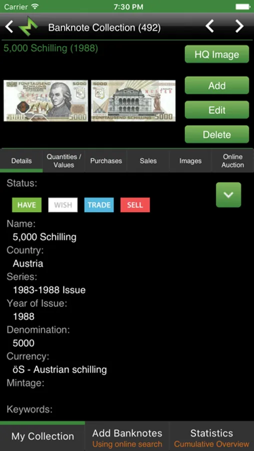 Tag your banknotes with Have, Wish, Trade and Sell status by simple click on status button or customize your own status list.