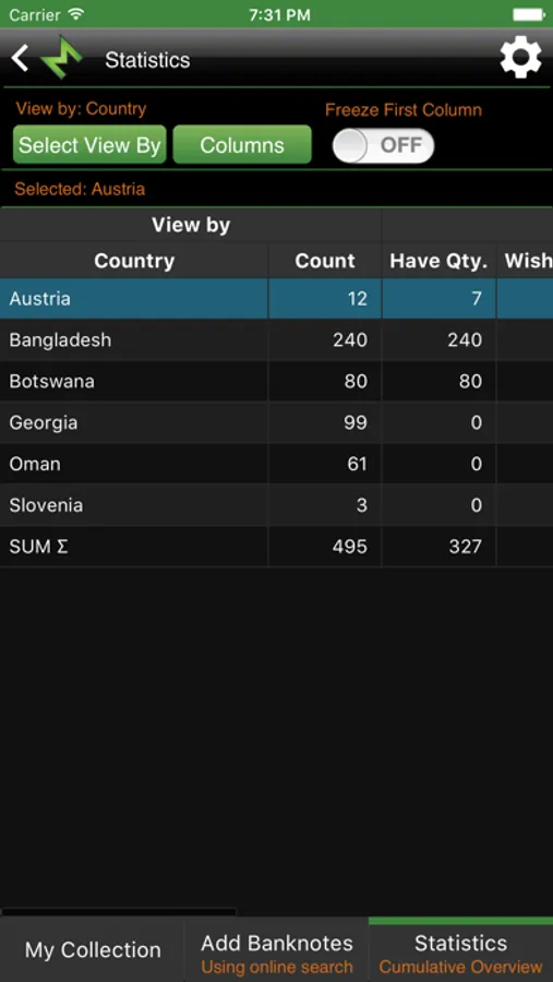 Simply manage your banknote inventory. You can store multiple quantities and values by condition.