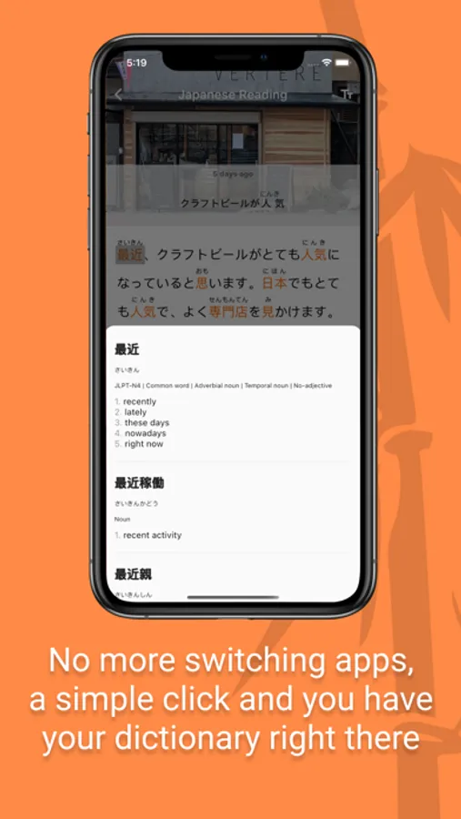 Getting a habit of reading Japanese instead of jumping straight to the translation is key to learning to read fluently. With JReader you now have a place to start, even as a beginner.