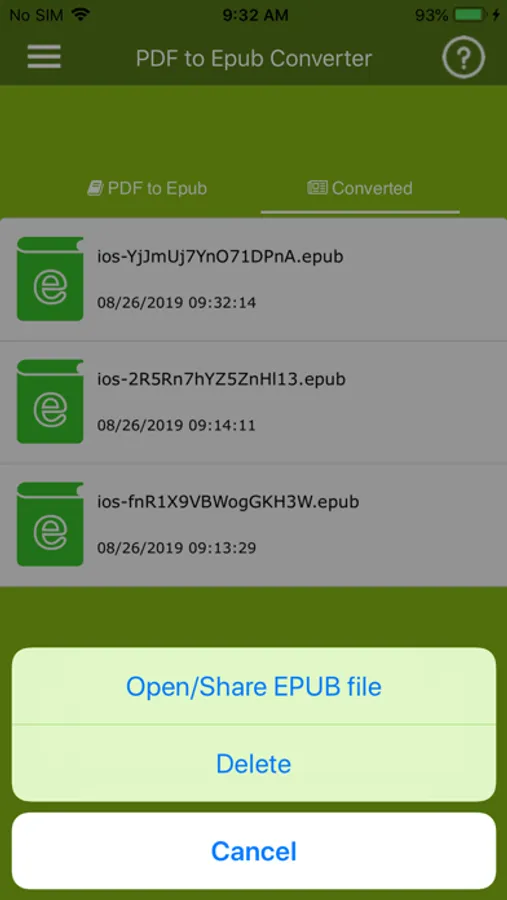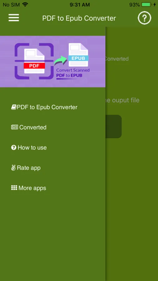 1. Click "Open PDF file" or Share PDF file to PDF to EPUB converter app