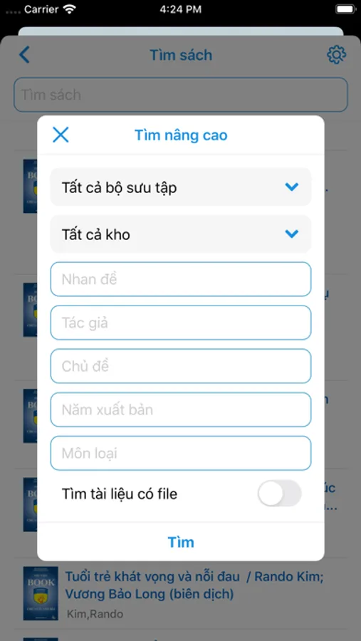 • TÌM NHANH: Xác định ngay bất kỳ cuốn sách nào trong thư viện HUTECH bằng cách nhập từ khóa tìm kiếm hoặc bằng cách quét mã vạch cuốn sách. Có thể tìm kiếm theo nhan đề, tác giả, chủ đề, thể loại, môn học và ngành học…