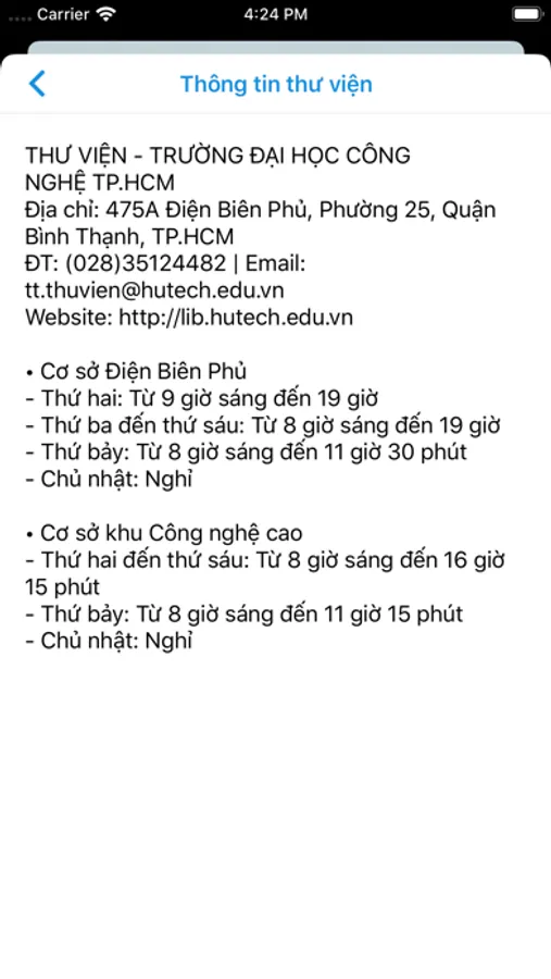 Ứng dụng Libhutech của trường Đại học HUTECH sẽ mở cửa ngay trên thiết bị cầm tay của bạn.