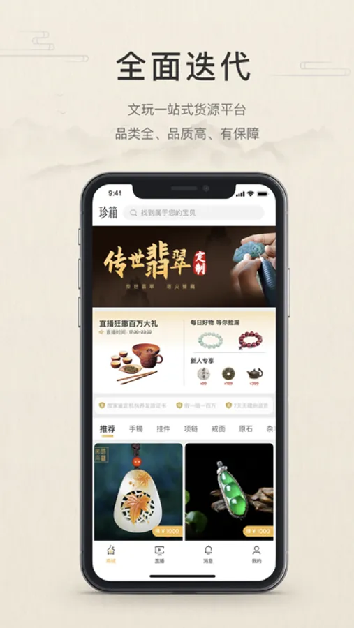 珍箱APP是一款能让您接触到翡翠珠宝玉石源头的电商批发平台,并提供第三方担保交易服务。