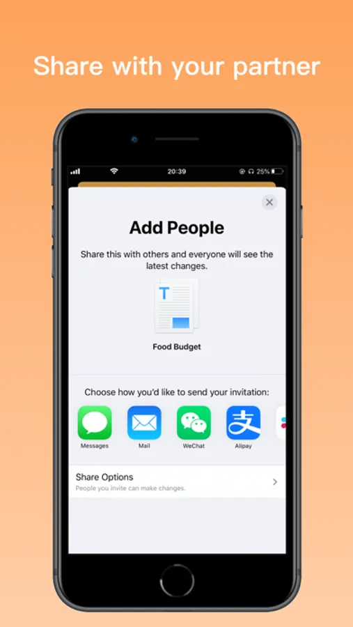 Want to share your budget with your partner? No problem. Try sharing the budget. You and your partner will tracking the expenses under the same budget.