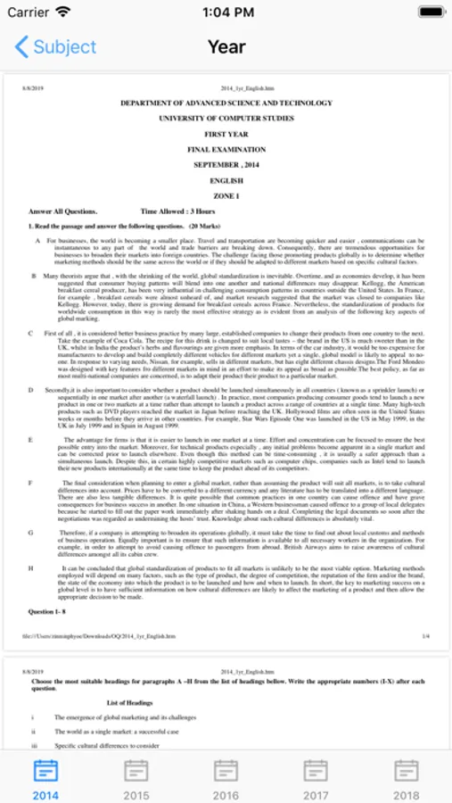 This app will guide for finding old questions, thorough years 2014 to 2019. Organized subject by subject and year by year etc.