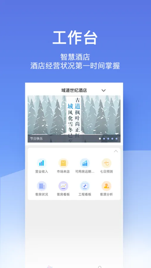 3.全酒店经营状态第一时间掌握,高效感知酒店经营变化,提供有力的酒店营销策略。