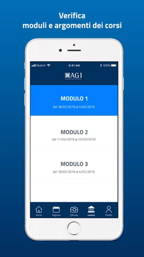 - registrazione della propria presenza alle lezioni grazie al lettore QR code interno dell’App