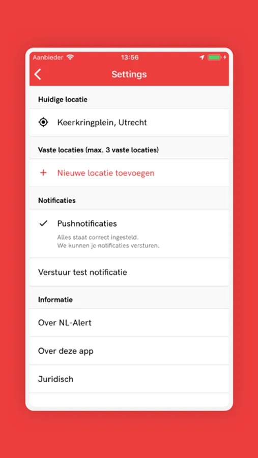 - Je locatie blijft bij jou. Zodra je een NL-Alert krijgt kijkt de app of je in het gebied bent. Je locatie verlaat nooit je toestel!