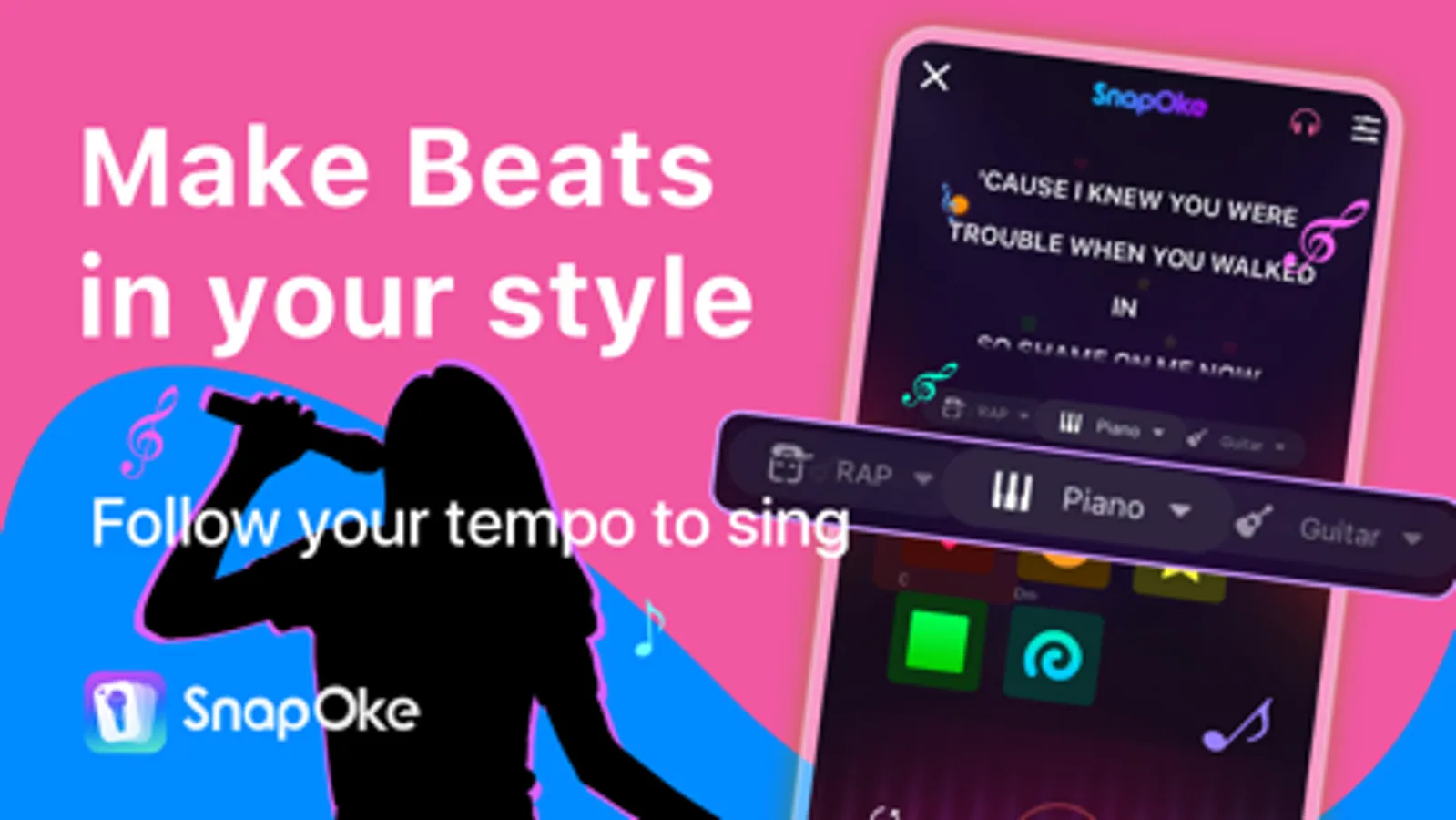 SnapOke is a creative free singing machine different from other mobile Karaoke apps, which can make freestyle beats and sing karaoke.