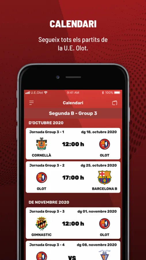Descarrega la nova App Oficial de la UE Olot i descobreix el que tot fan de l'Olot ha de conèixer.