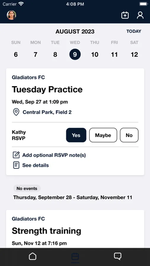 - RSVP to upcoming events and track attendance