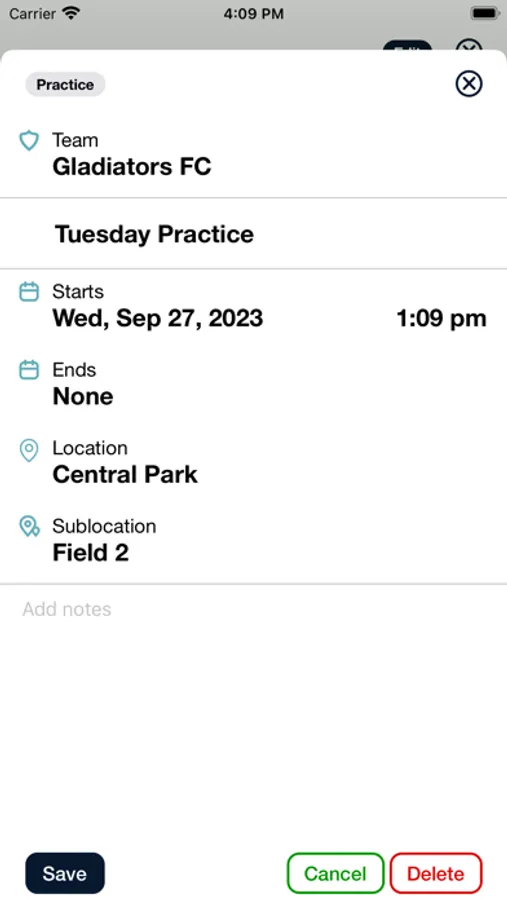 - Get directions to practices and games
