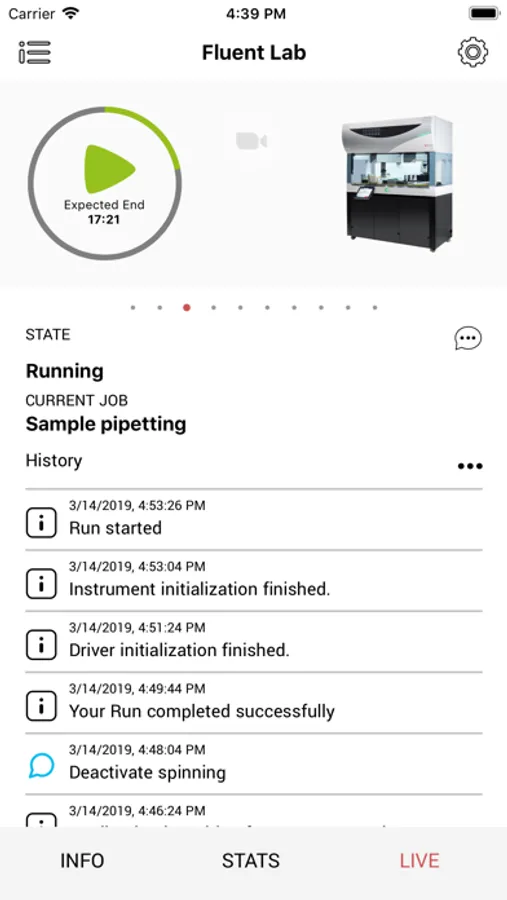With Connect you can view a list of Tecan instruments that are connected to your network. The current status of each instrument is shown (i.e. idle, running, user interaction required or error). Push Notifications inform you in real time of important events.