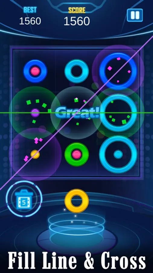 - Remove the rings by making horizontal, vertical, or diagonal line has the same color.