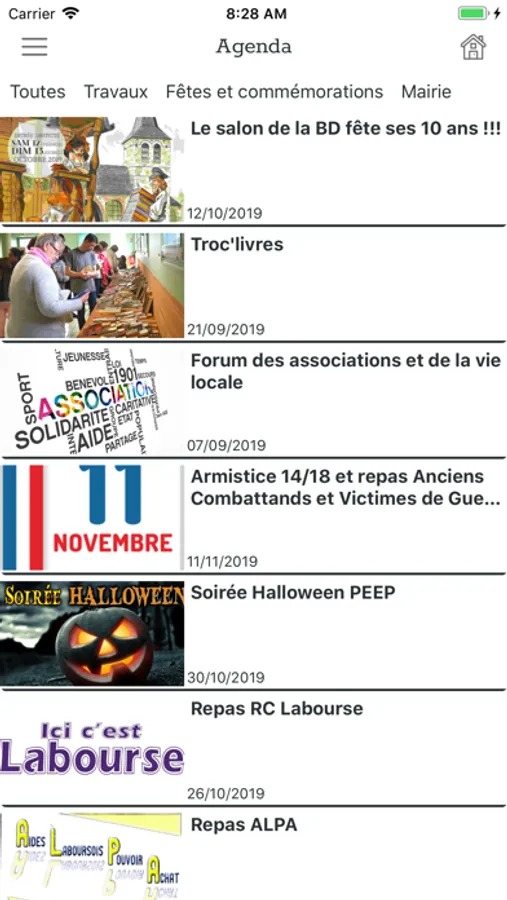 L'application permet de consulter des actualités, des événements, les informations pratiques de la commune.