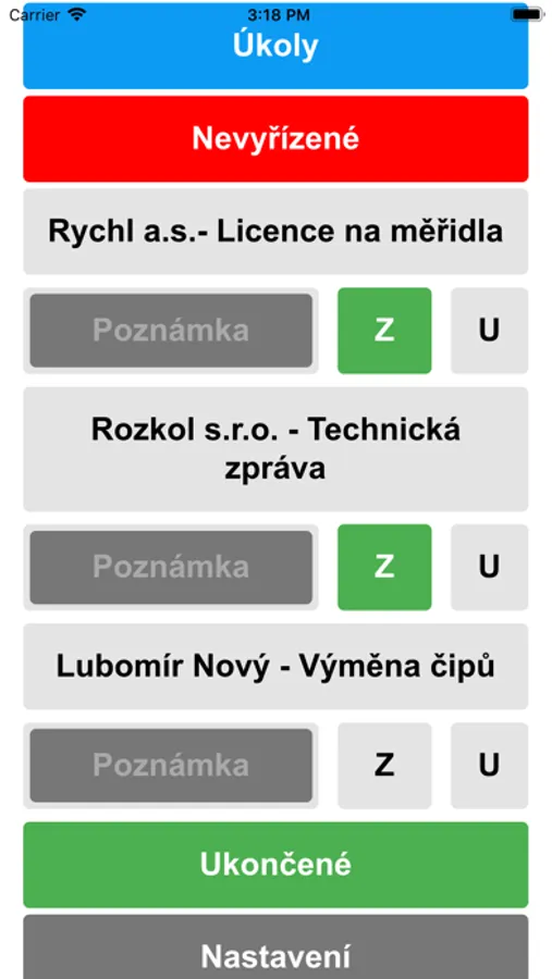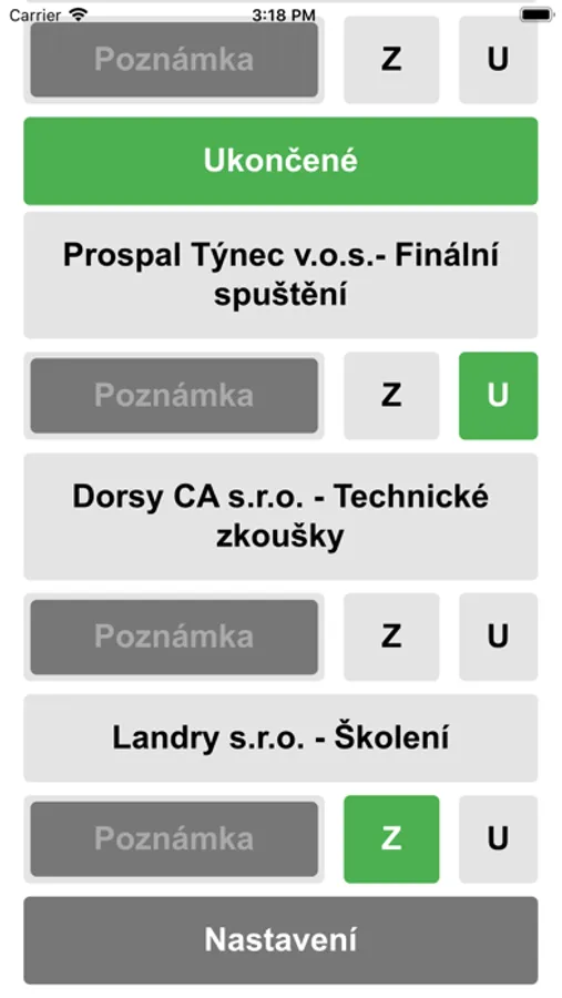 Nastavování stavů jednotlivých firemních operací.
