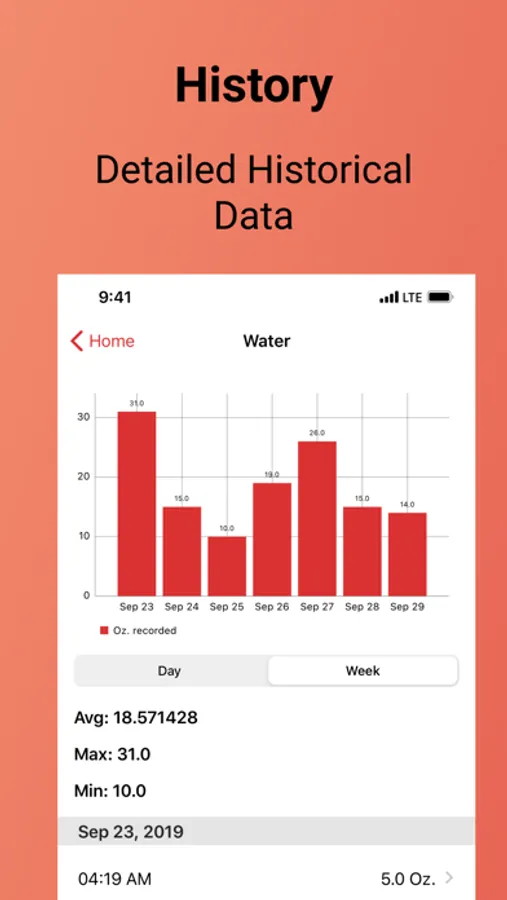 • History: See complete historical data for anything you track. Then you can view any date range, average minimum and maximum for all your data.