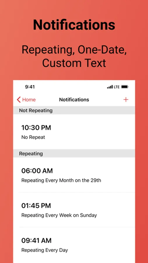 • Notifications: Remind yourself from within the app. You can create repeating or on-a-date reminders and customize the message in each one.