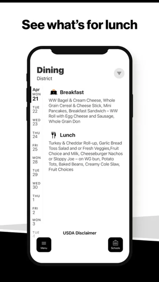 Within the dining section, you’ll find an easy to navigate, weekly menu, sorted by day and meal type.