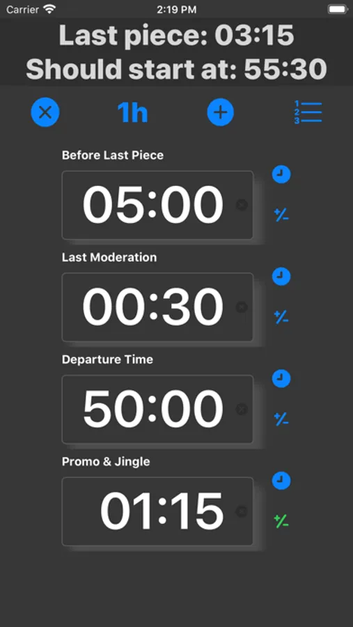 A little time calculator for people working at radio stations, who have to calculate the exact hour with multiple pieces of music or other word contributions. The App calculates the gap for the final piece to get the 60 (120, 180) minutes full and let the user find by the second the last music or word piece to fill the exact 60 minutes – in every region of the world mostly the time, when the news are taking place. So it's fast and easy to get your own broadcasting and the news exact together. Hope this helps you in practise!