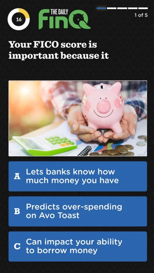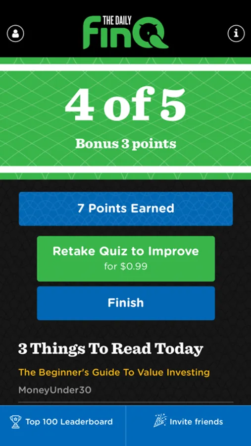 Playing The Daily FinQ financial quiz game twice a day is a fast, fun and free way to learn about money and finance and help you get on the path to financial health and wealth.