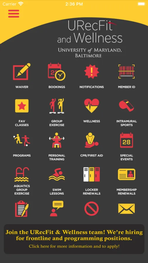 Welcome to the official URecFit Live app! Conveniently access information about URecFit services and programs right from your mobile device. Register for group exercise classes, check out Intramural schedules, get updated hours, browse a list of upcoming events and programs, and receive notification of closures, cancellations, and more! Select your "favorites with a click of a button and receive reminders directly on your phone.