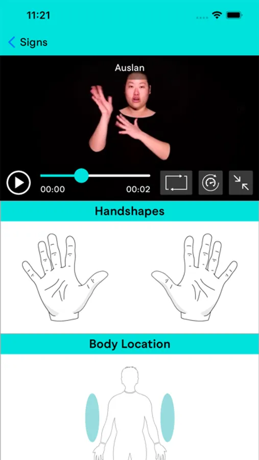 Easily find the sign you're looking for by searching our library with an English keyword, the sign handshape, or location. All signs link to a range of helpful information on location, shape, usage, and grammar, to help you learn the language. This information is displayed on screen along with a handy video guide.