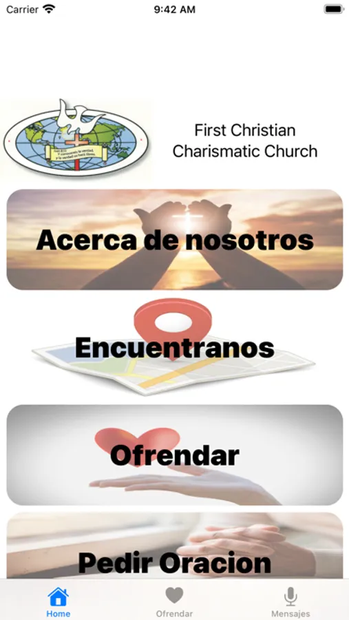 Esta App móvil ha sido diseñada para aportar a los miembros de la Primera Iglesia Carismática de Meriden en Connecticut USA, una herramienta que les permita tener acceso inmediato a la información de la iglesia, tales como: misión, visión, ubicación, números y medios de contacto, el calendario mensual de actividades y una galería de fotos que nos permiten rememorar la obra que Dios ha hecho, hace y seguirá haciendo en medio nuestro.