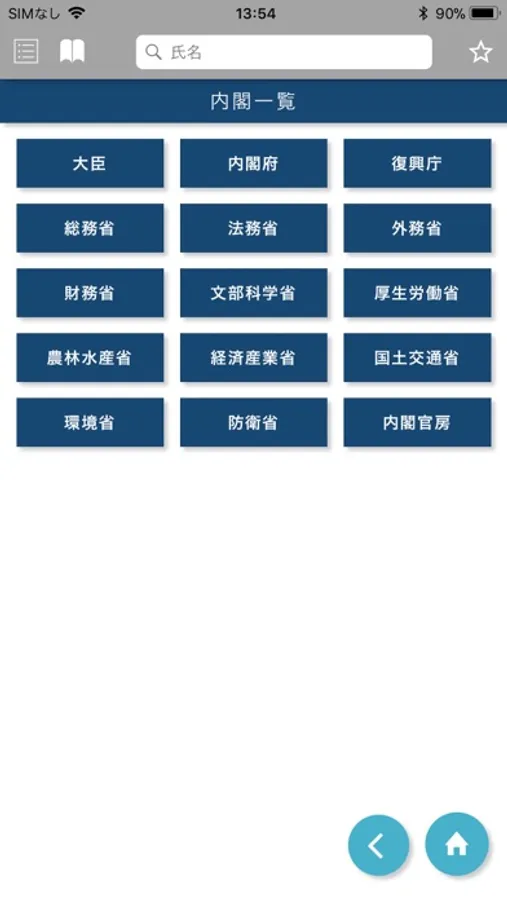 ・各種一覧:国会の勢力分野、大臣・秘書官・副大臣・大臣政務官・事務次官一覧、衆・参両院常任・特別委員長、委員会、各政党役員、衆・参議員議員勤続年数・当選回数表、党派別国会議員一覧、自由民衆党内派閥一覧、省庁幹部職員情報、地方庁