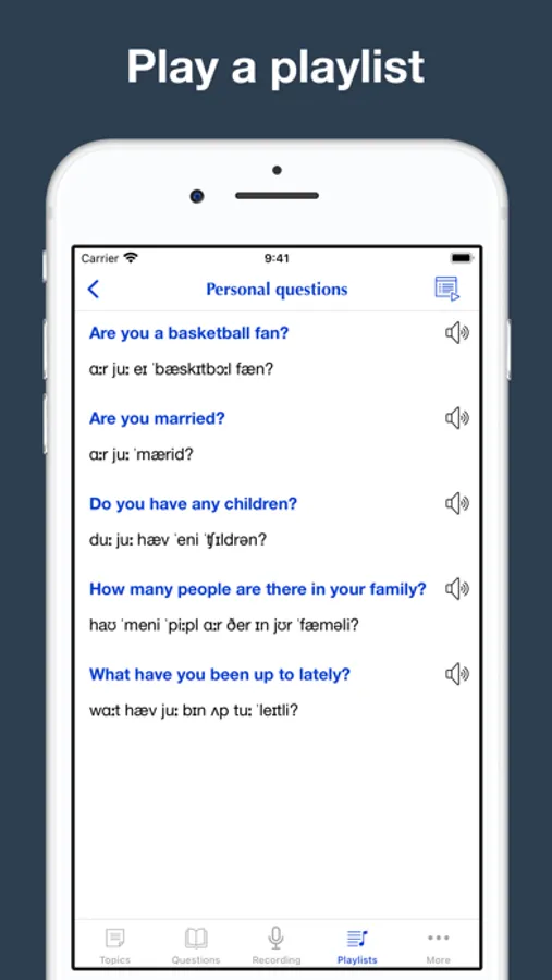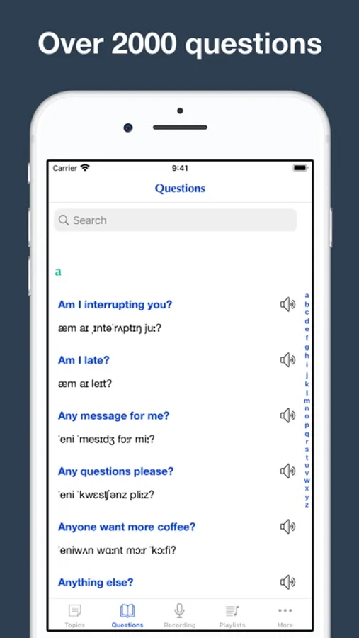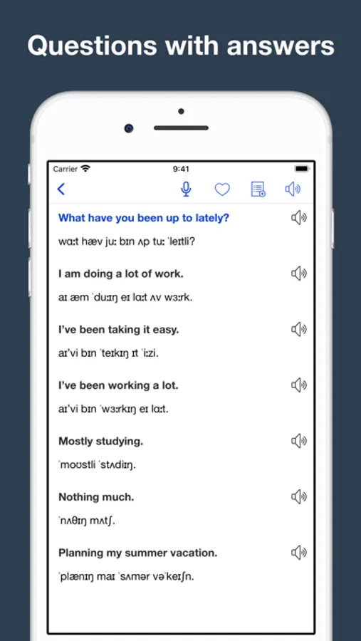 This app provides study materials and learning tools for you to learn how to ask English questions and how to answer them.
