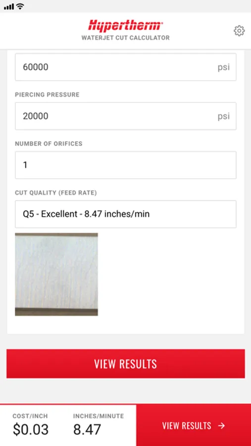 Quickly calculate the optimal setup to pierce and cut your material with your waterjet machine. This tool includes the ability to configure custom orifices/nozzles, custom materials, and use your preferred currency and units.