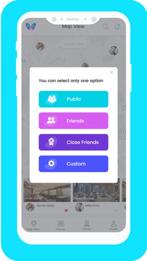 Share your favorite restaurants, bars, and party destinations! Our privacy settings allow you to easily adjust your preferences, so you can be visible to only the people you want.