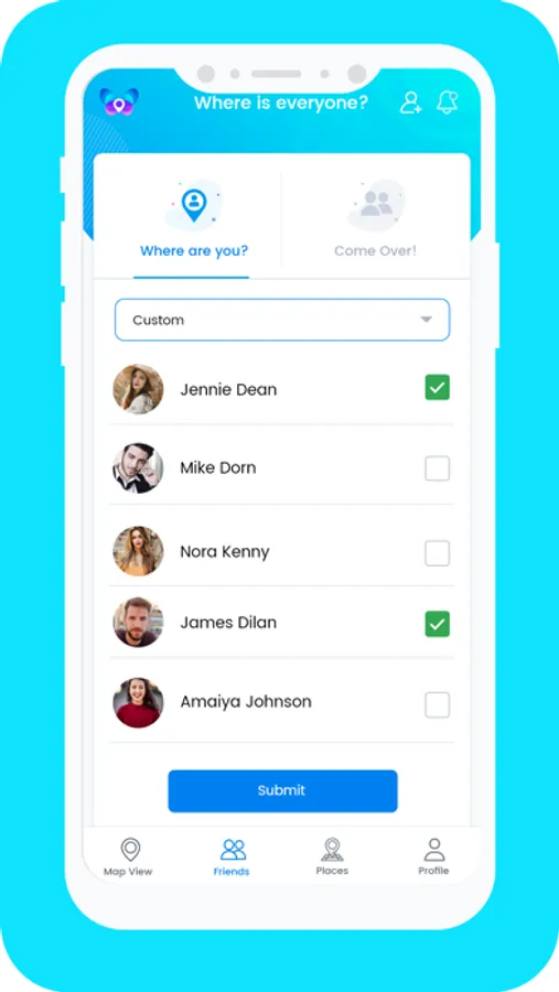 Invite your friends to join the party by sending a “come over” request. With one click, you can extend the invite to your friends!
