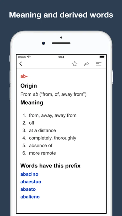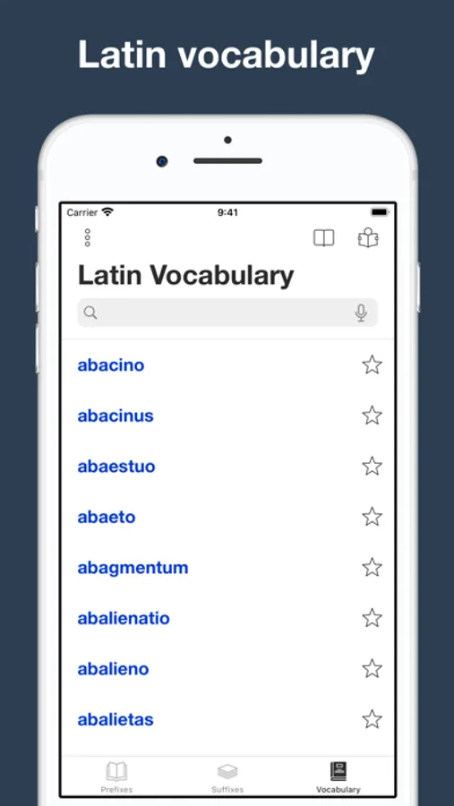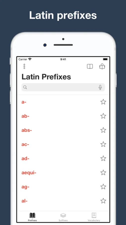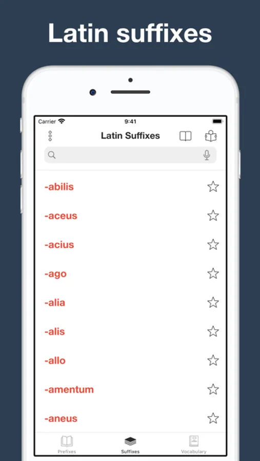This app provides a comprehensive list of Latin prefixes, suffixes and Latin vocabulary that derive from them.