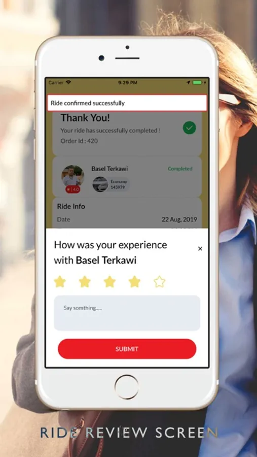 - Confirm and you’ll see your driver’s arrival in real-time on the map, along with their picture, vehicle and contact details.