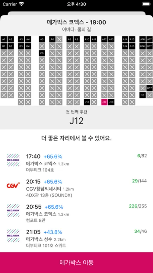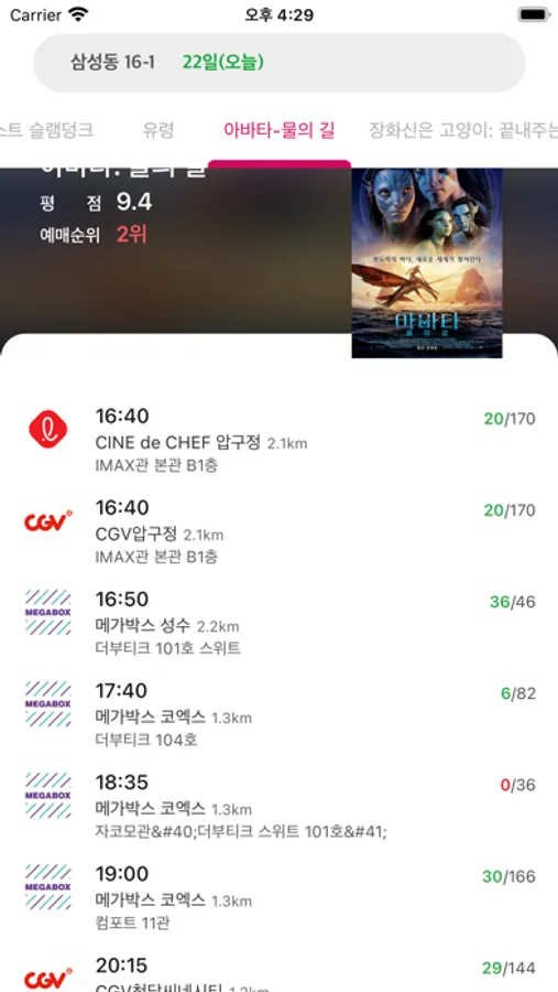 근처 영화관 상영시간표를 모아서 한눈에 보여줍니다!